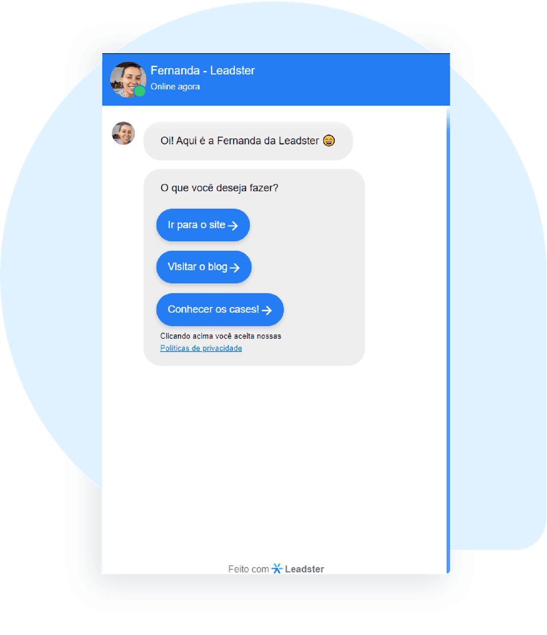 A Leadster é uma plataforma de marketing conversacional com um chatbot de marketing e vendas que aumenta em 3 vezes a captação de leads das empresas.