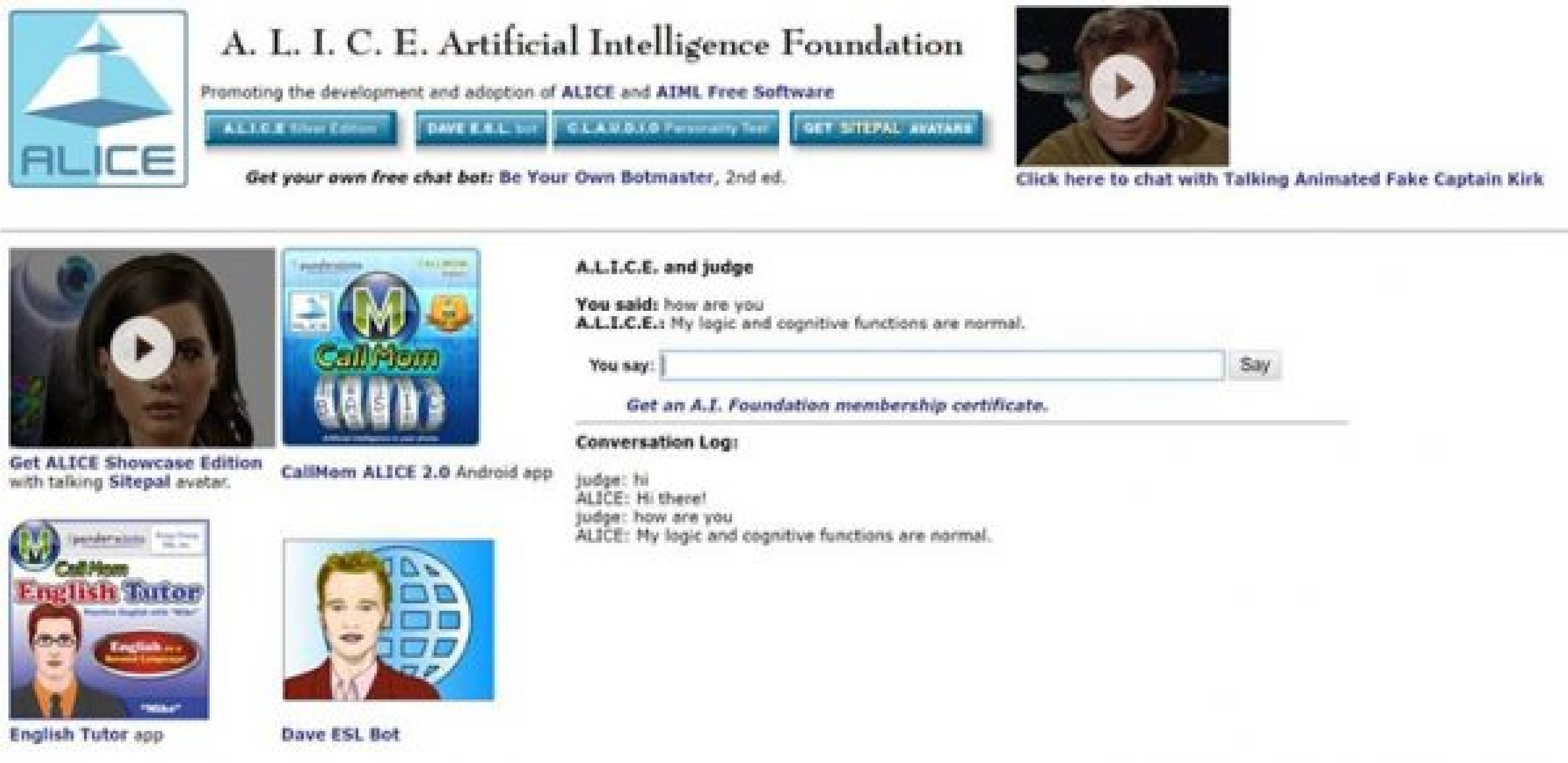 Posteriormente, em 1998, o programa foi editado em Java e, em 2001, com seu padrão AIML aberto, foi possível que outros desenvolvedores elaborassem fontes livres e abertas do A.L.I.C.E.
