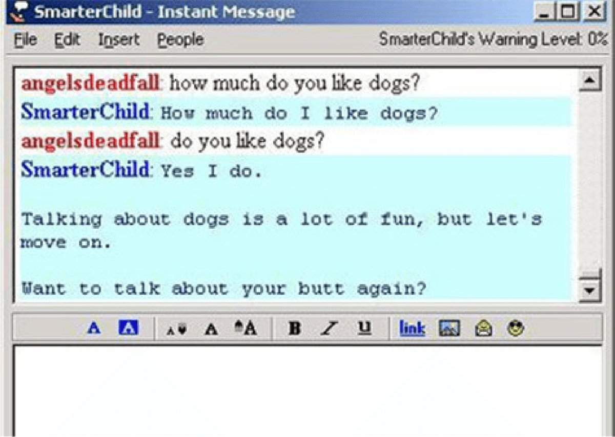 Esse chatbot, disponível no AOL IM e no MSN Messenger, tinha conversas mais divertidas e com acesso rápido a outros serviços.